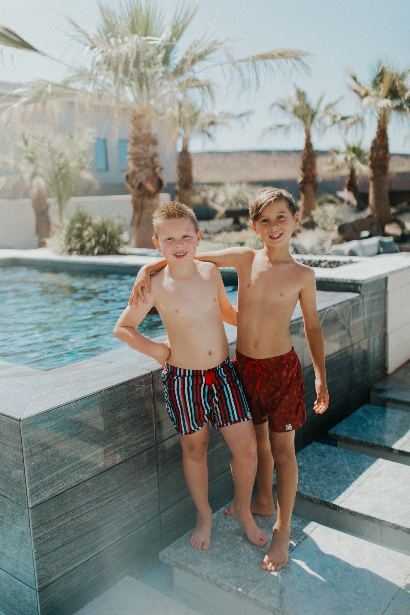 Experience the ultimate boys swimsuit that every boy mom has been waiting for. The breathable 4-way stretch mesh lining offers support, a flat cord tie and fabric designed to handle water play and while keeping up with them through all their swimming adventures.